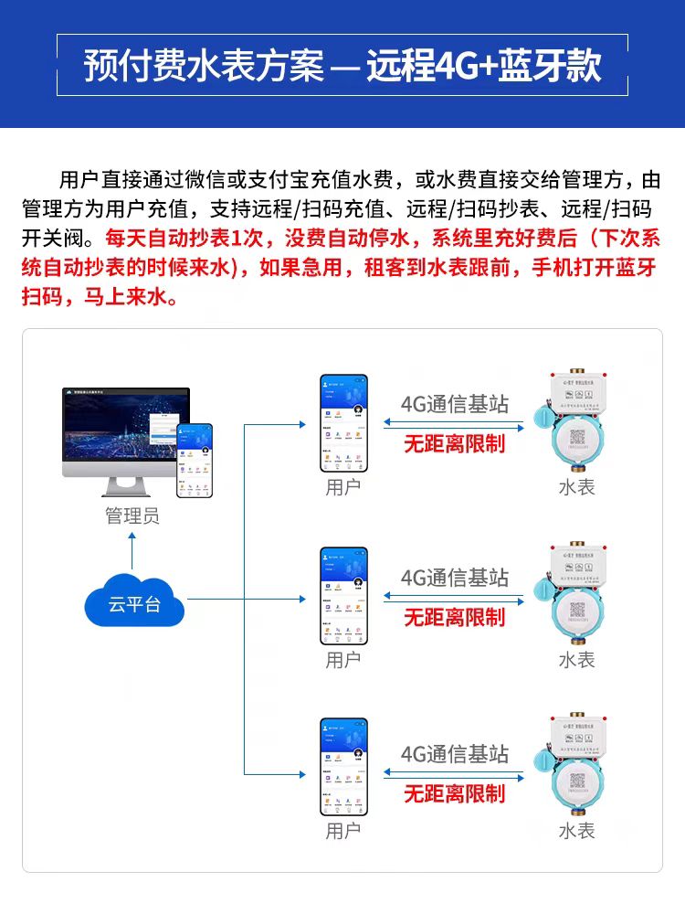 3.4G無(wú)線閥控預(yù)付費(fèi)智能水表用水控制